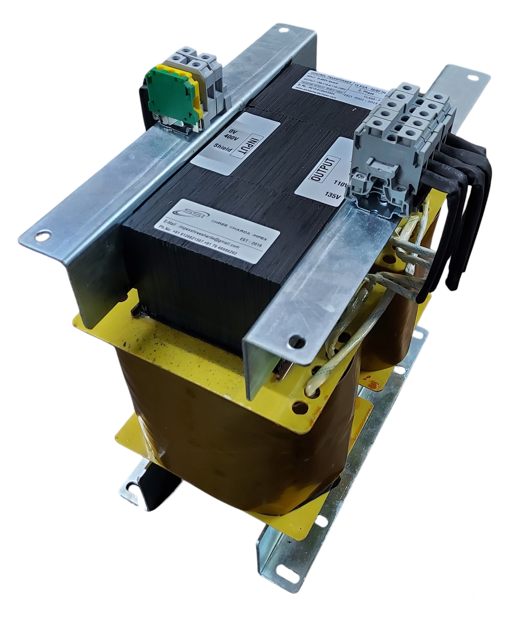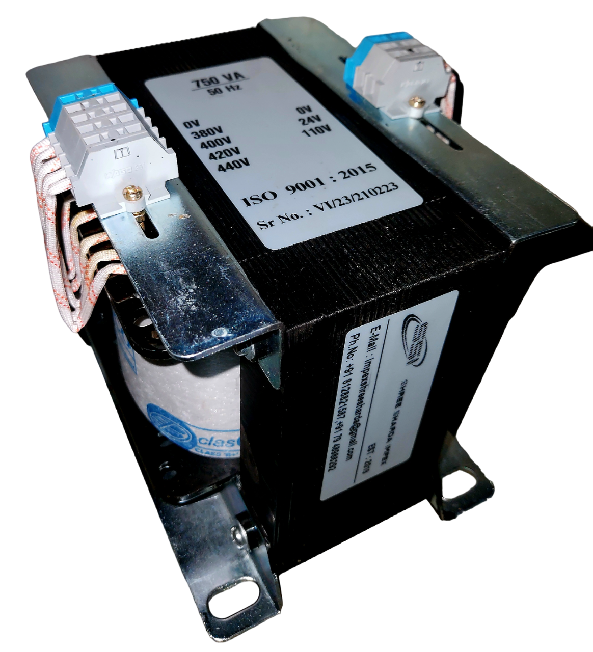 750 VA - 2.Phase - 50/60Hz, 440/24,110V, Copper Wound, Class F insulated, as per IS and IEC.