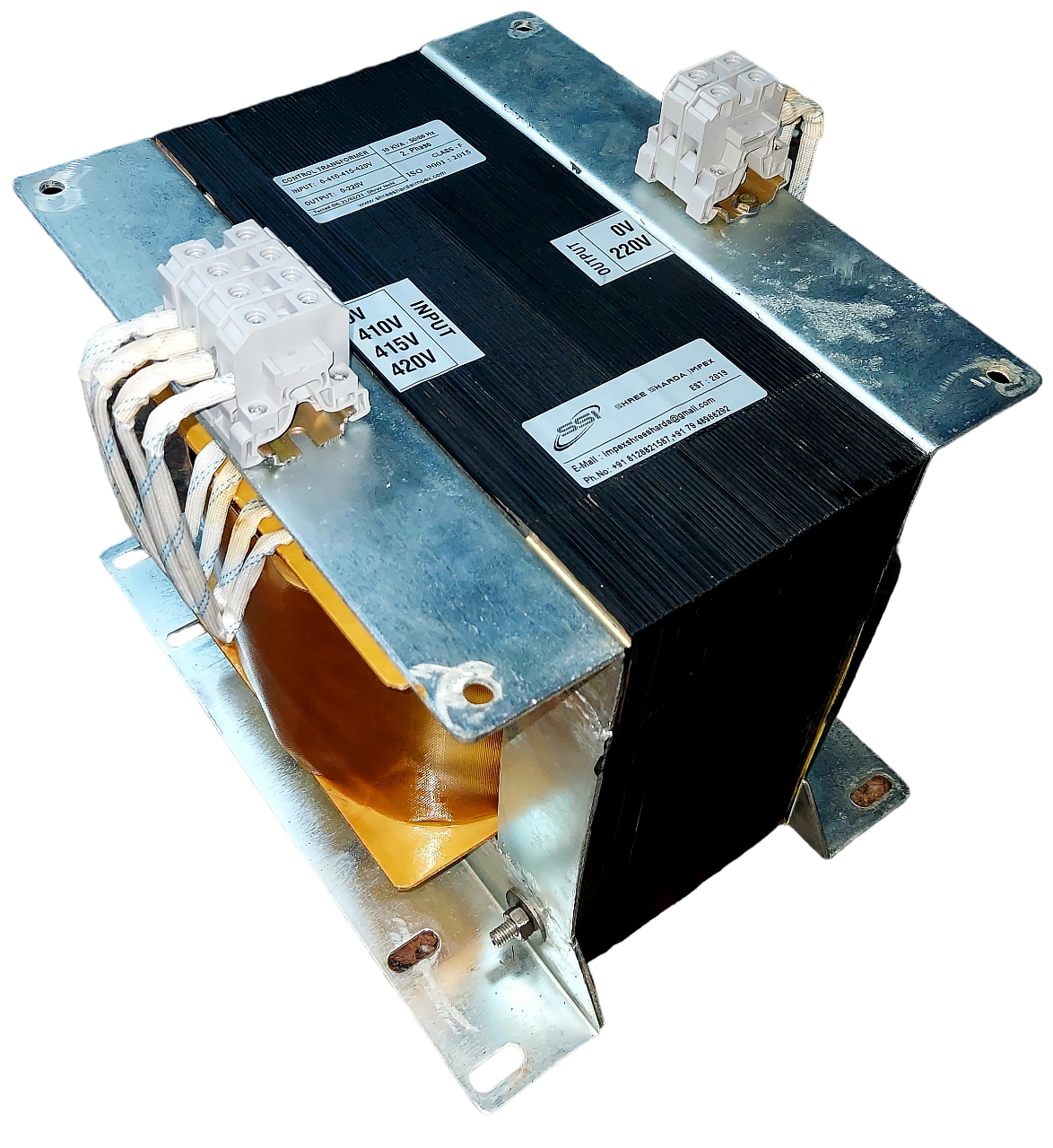 10 KVA - 2.Phase - 50/60Hz, 420/220V, Copper Wound, Class F Insulated, as per IS and IEC.