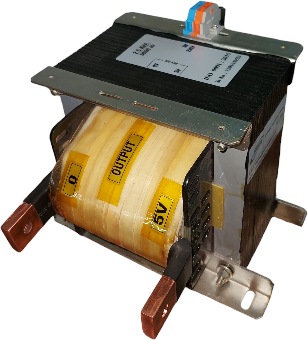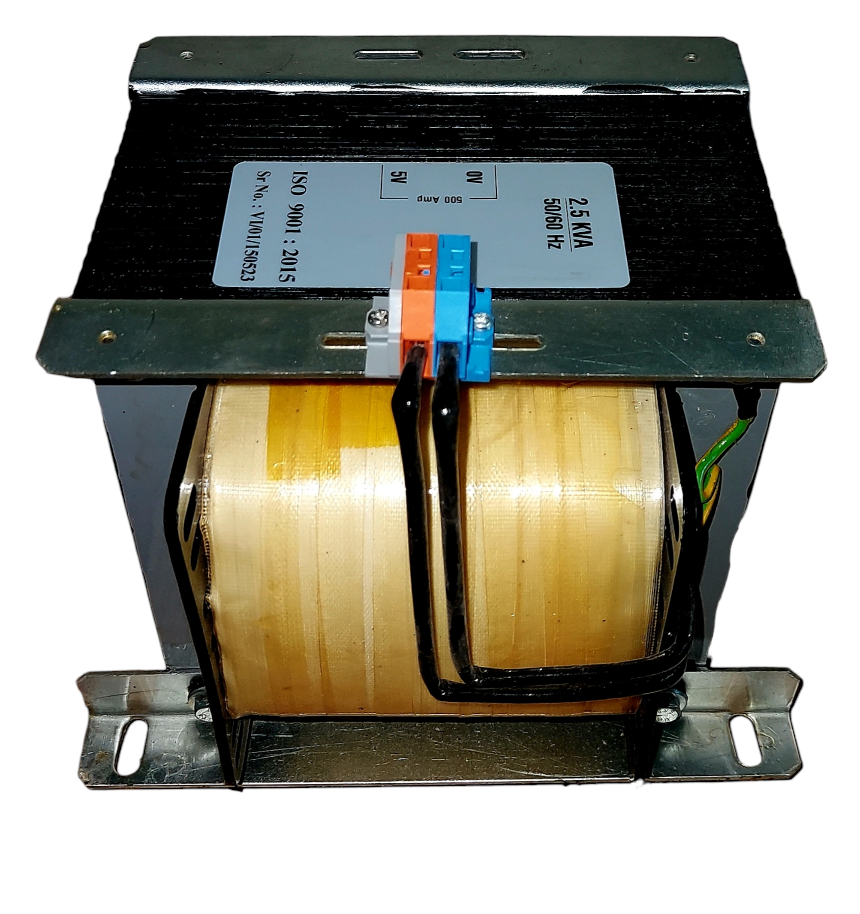 2.5 KVA - 1.Phase, 50/60Hz, 230/5V (500.Ampr), Copper Wound, Class F Insulated, High Ampr as per special Requirement.