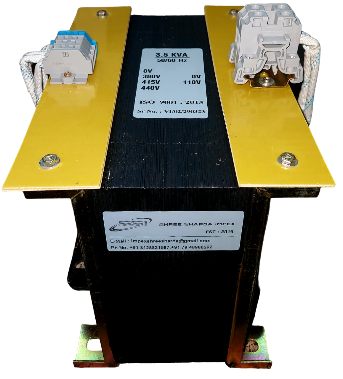 3.5 KVA - 1.Phase - 50/60Hz, 415/110V, Class F Insulated, Copper Wound, IS12021, ISO 9001:2015